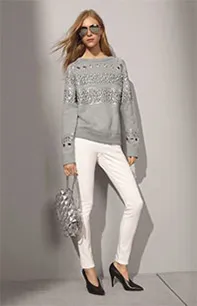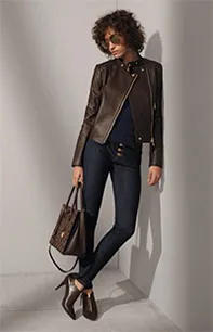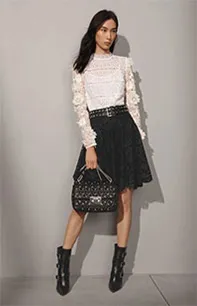 质感上乘辅之以闪亮装饰点缀,这一季刚柔并济的新品精彩展现了硬朗奢华的前卫气质。大胆的动物印花、丰盈的质感、浪漫的细节装饰和自然的色调及实用廓形构成