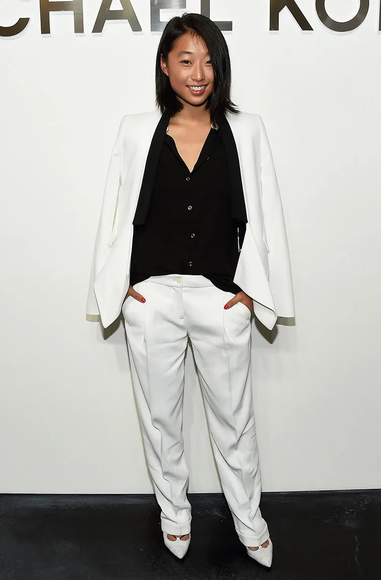 Black tunic, white blazer and white trouser, all from the Michael Kors Transeason 2014 Collection