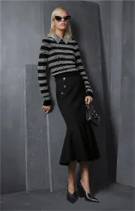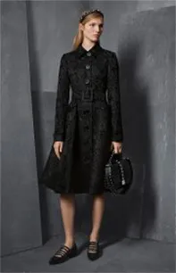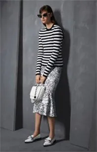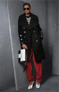从男式立体剪裁下轮廓分明的腰线、宽大的肩垫以及军装元素风格,到极富魅力的紧身裙装,无不彰显了这一季女装优雅与硬朗兼容并蓄的设计理念。 过膝高腰裤勾勒清晰的腰线,显露职场女性干练而强大的气场;经典永不过时的派对晚宴装凸显女性独有的柔美曲线,妩媚中流露出高雅的气质。