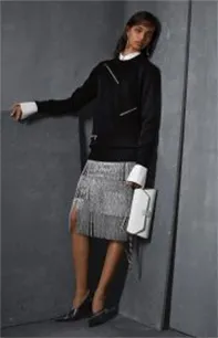 在细节的设计上,MICHAEL KORS COLLECTION 2017早秋系列灵活运用了印花、男士格纹与流苏线条。颇具女人味的流苏元素被大胆地使用于连衣裙和配饰中,搭配金属色系,诠释50年代的华丽与高贵。浓浓的派克大街朋克风链条装饰元素和大面积刺绣的使用,完美平衡了简洁中性风与典雅的女性气质。