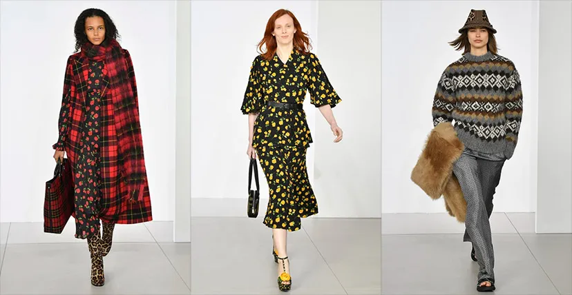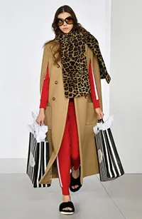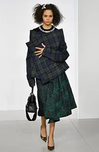 摇滚皮靴,不透明的淋浴门,笨拙的70年代厚底鞋,充满风情的手袋,奢华的购物袋,定制的卷芯,时髦的包袋提手,军装风格手提包,奢华的珍珠和人造钻石,俏皮的软呢帽和围巾,呈现经典与时尚的融合。